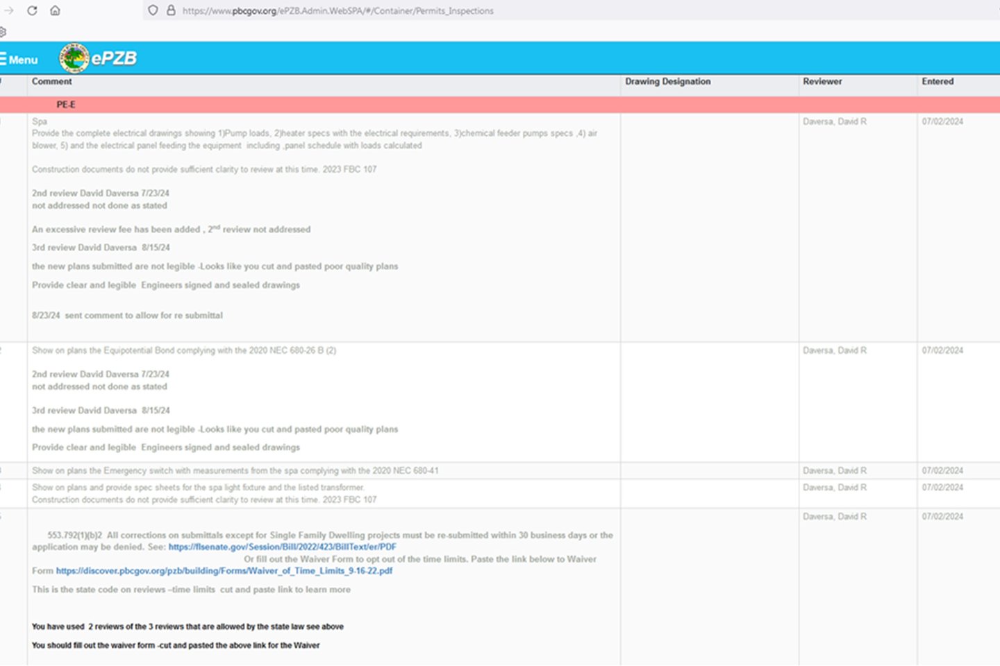 According to the County Inspectors, the contractor, Pugh Pools, submitted what the county referred to as: