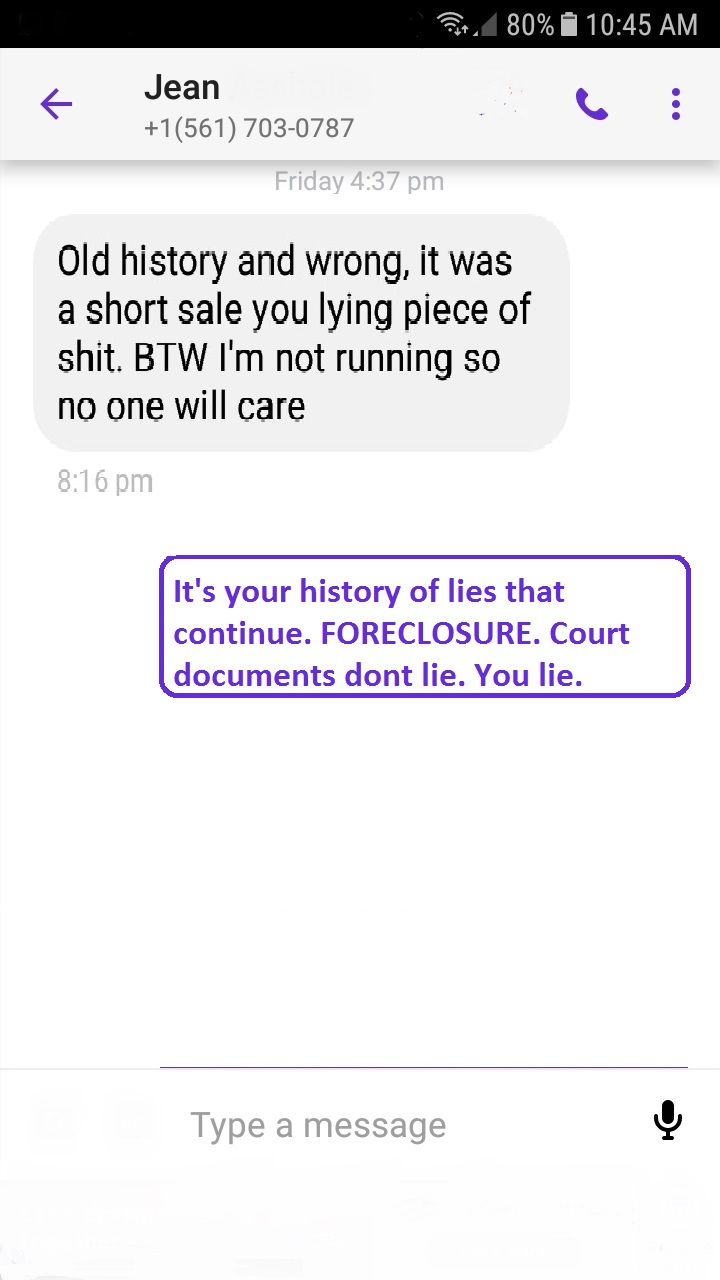 Why does Jean escape consequences while others do not? It's because she enjoys taking liberties and privileges that are not available to the rest of us because she is good friends with other board members, as well as the previous office manager (Kristine Diaz), who consistently overlooked such behavior. This is corruption that undermines the community. Jean also served on the board while penalizing others for the same offense. This also makes Jean Legrys a hypocrite. However, this is not the sole reason to label her a hypocrite; she also lost her previous home in Sable Lakes due to a foreclosure in the same year she moved into our community in 2015. County court records show the foreclosure, but Jean tries to claim it was a short sale. The fact is that she failed to make mortgage payments for three years. By the time the foreclosure process was completed, she missed $67,557.24 in payments and owed her bank over $350,338.46 at foreclosure. When Jean became a board member, she vigorously sought to adopt a rule that would prevent others with foreclosure histories or low credit scores from purchasing homes here, claiming they are high-risk. This also makes Jean a hypocrite.